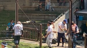 バスから降りると、夏の熱気が私たちを包みました。山古志闘牛場は長岡市の山中にあります。山の湿気と夏の暑さが作る空気は、これから始まる闘牛観戦への気持ちをさらに盛り上げました。