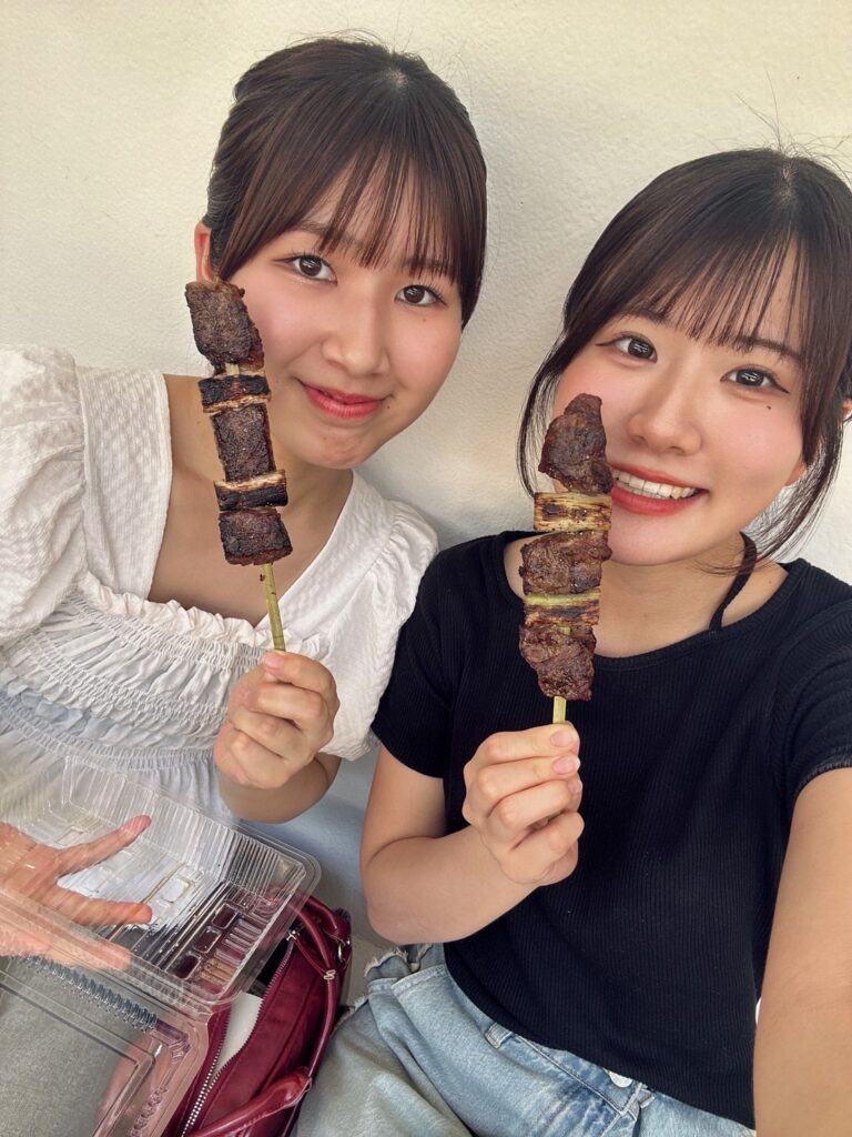 観戦後には、屋台で山古志産和牛の串焼きを味わいました。脂が口の中で溶けるようでジューシー、弾力がありながら柔らかく、香りも豊か。ご飯と一緒に食べるよりも、肉そのものをむしゃむしゃと頬張るほうが美味しいと思えるほど、贅沢な一串でした。