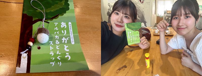 お土産作りはボンドとハサミが必要でしたが、お店から借りられたので手ぶらでできるところがいいなと思いました。作り方も簡単で5分程度で作れたので小さいお子さんも楽しめる印象です。震災復興として米国の牧場から山古志へ贈られて以降、地域外からも人気を集めるアルパカの毛が使われているため、自分の手で作ったという体験も含め、山古志に行った思い出としてぴったりです。