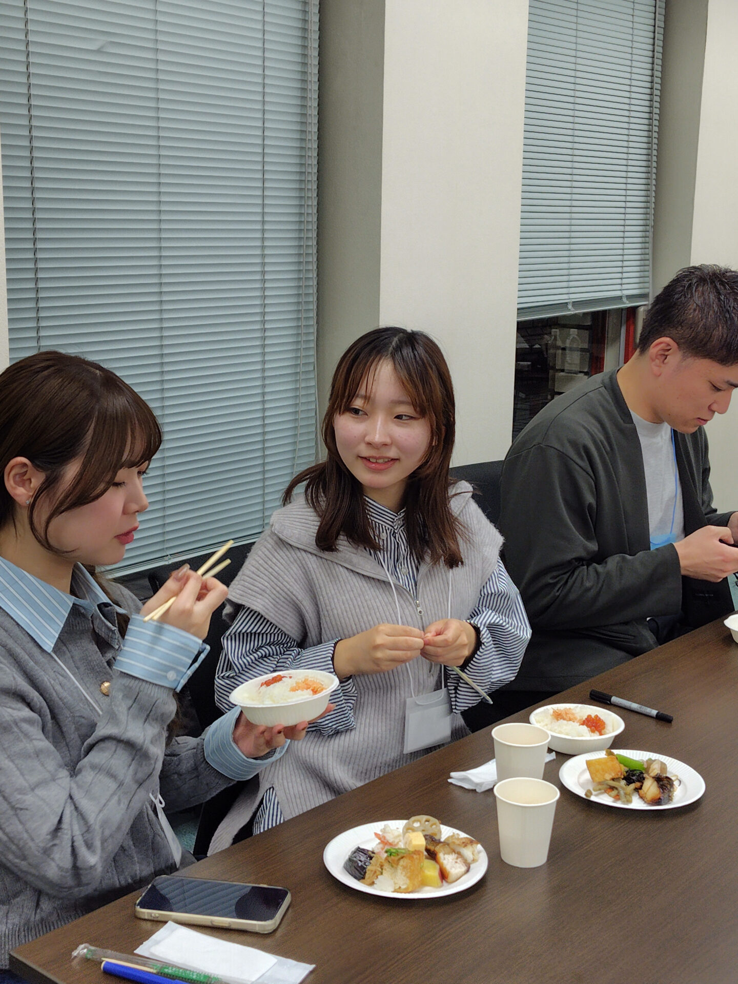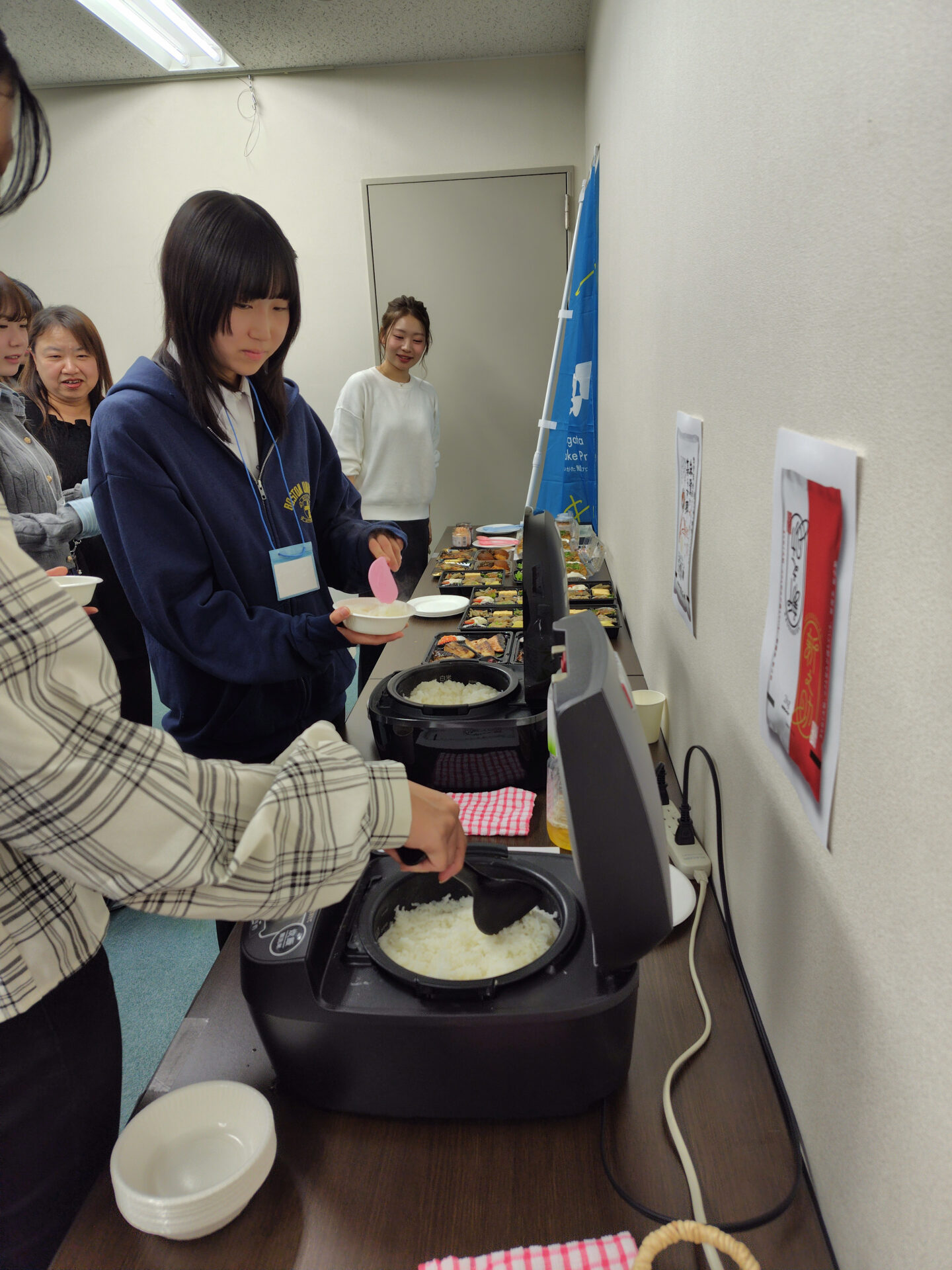 交流会では、鮭プロの趣旨に賛同し活動を支える「サポーターズ企業」の皆さまからの協力を得て、炊きたての新米2種(佐渡産コシヒカリ、新之助)を試食しました。イクラ醤油漬けやさけ茶漬、松前数の子にスライス味噌漬け。「ご飯のおとも」と一緒に、ふるさとの味をおいしくいただきました。