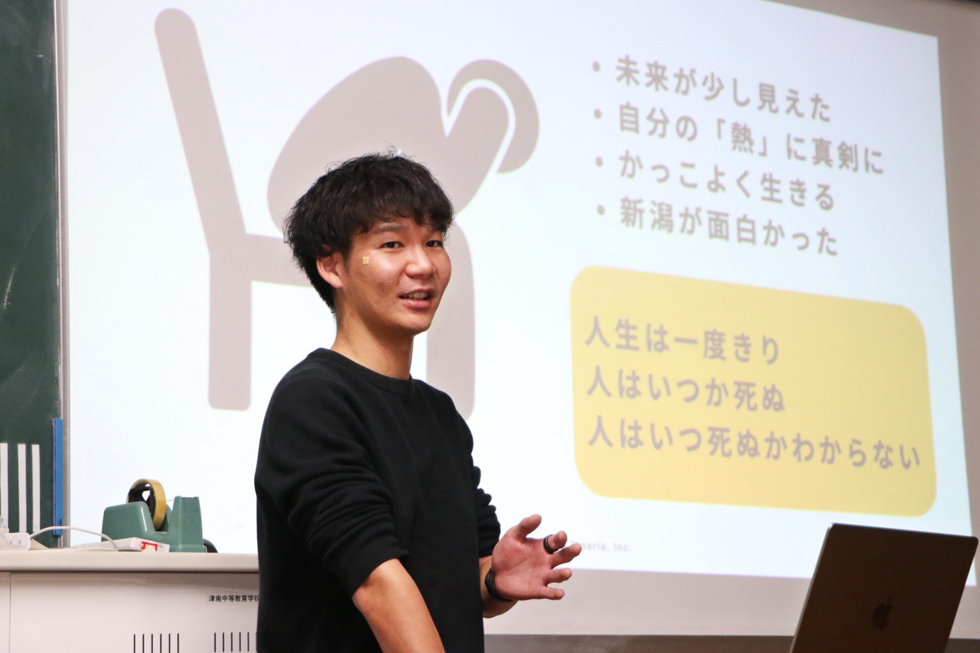 卒業後は企業に就職するも、友人から自らが立ち上げた事業への覚悟を問われます。未来が見通せる会社員としての働き方ではなく、自分の会社にしっかり向き合おうと決意。専業当初は収入が減少したことや、創業者としての責任感にも「ほぼほぼきつい。不安は今もある」と明かしました。一方で、「(事業が)成長すれば新潟を変えられると信じている。それがモチベーション」と語り掛けました。