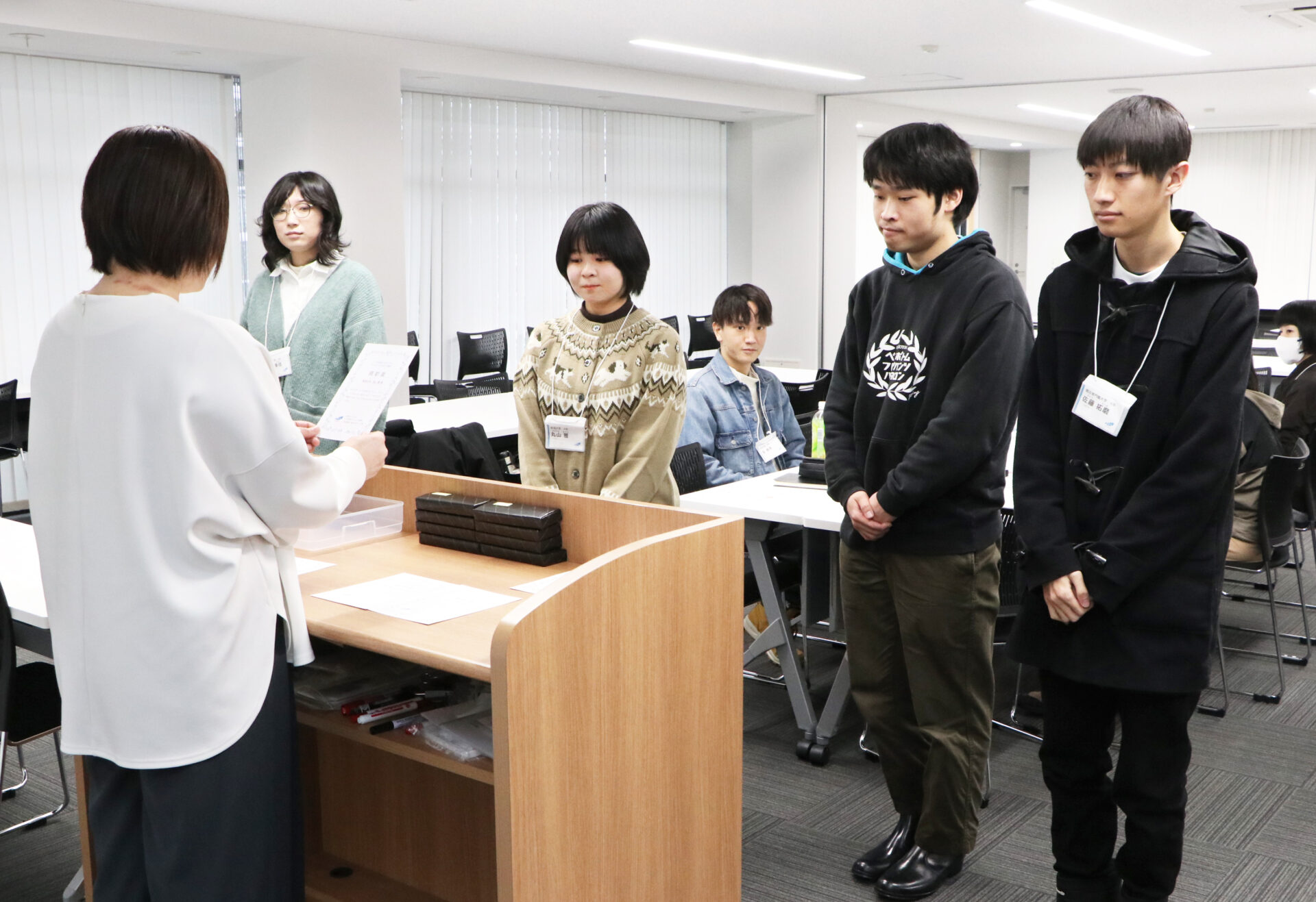 修了式では一人一人に修了証を手渡し、大学4年生には記念品を渡して送り出しました。