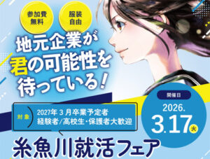 糸魚川市は新潟県の最西端に位置し、東は富山県、南は長野県に接する人口約4万人のまちです。国石ヒスイの産地でもあり、豊かな自然が織りなすダイナミックな地形や歴史文化等が日本で初めて世界ジオパークに認定されています。また東京まで北陸新幹線で約2時間と首都圏からのアクセスも良く、海水浴、登山、スキー、サイクリング等のアクティビティや山海の食べ物も豊富で来訪者の五感を満足させます。