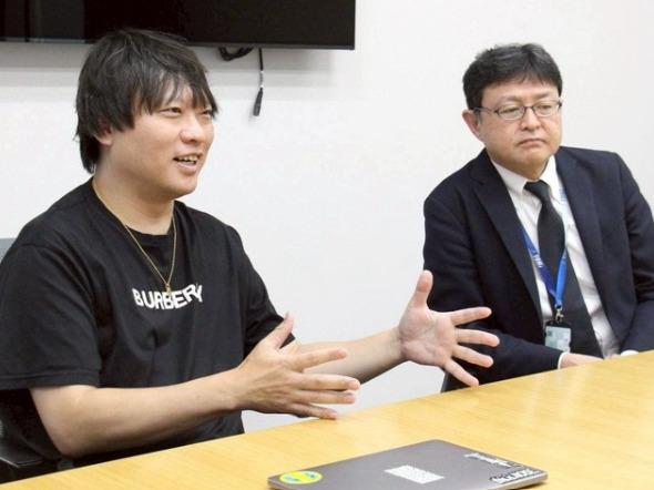 【写真】株主総会後、取材に応じる和田直希共同CEO(左)ら=29日、東京都内