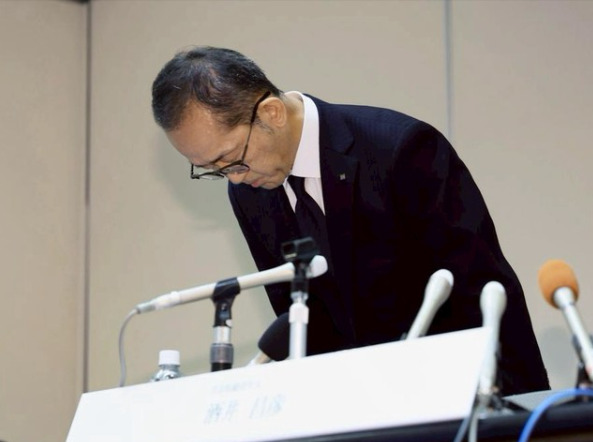 【写真】所得隠し問題の調査結果を報告する記者会見で陳謝するNSTの酒井昌彦社長=3日、新潟市中央区のNST本社