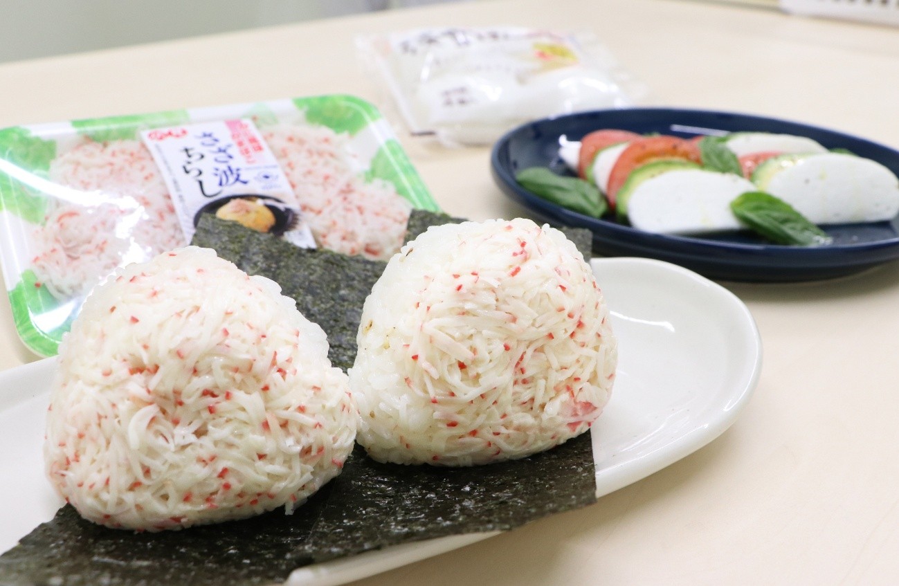 今回は特別に、お二人が紹介してくださった「カプレーゼ風淡雪はんぺん」と「さざ波ちらしおにぎり」の試食をさせていただきました。