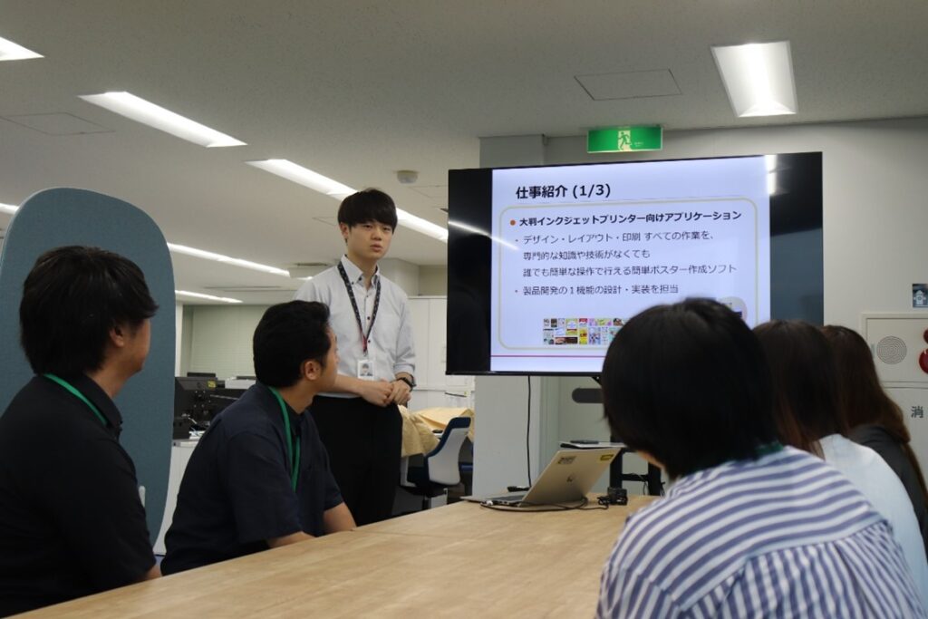 若手社員との座談会では、学生たちが入社のきっかけや就活のエピソードについて質問しました。首都圏の大学を卒業後、同社にUターン就職した入社4年目の若手社員は「UI(ユーザーインターフェース)デザイン(※)の開発に興味があり、就活は首都圏と新潟の両方でやっていた。世界中の人が使っているキヤノン製品に関わる仕事は魅力的だった」と答えていました。