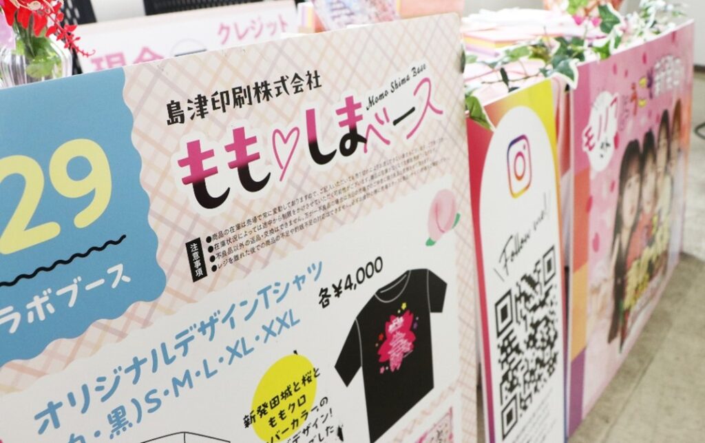 アイドルイベントとのコラボレーションでグッズを作成。Tシャツやポストカード、メモ帳などさまざま
