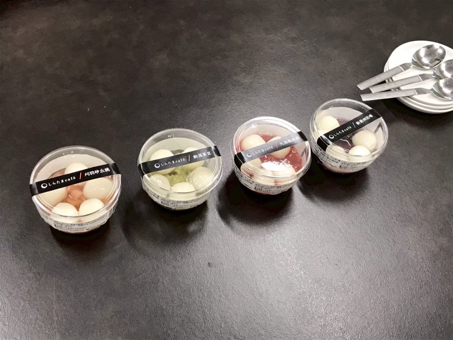 「しらたまcafe」というスイーツで、中には白玉と各種フルーツとソースが入っています。新潟県産のフルーツを使用しており、茶豆や越後姫など新潟の甘味を楽しむことができました。ソースは白玉とよく絡むよう工夫をされているそうで、さらに白玉そのものも甘く香り豊かな粉を原料としているため、フルーツとソースの甘味と白玉の爽やかなもち米のおいしさが融合したとても美味しいお品物でした!
